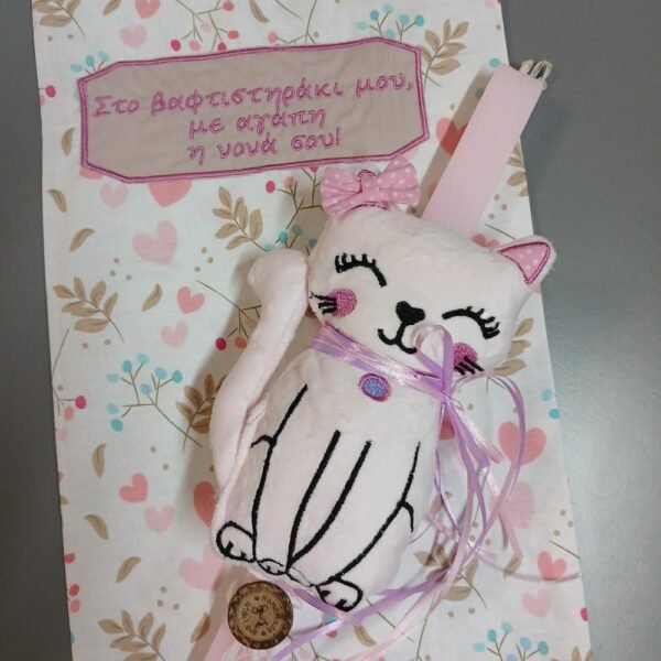 Χειροποίητη Πασχαλινή Λαμπάδα με Υφασμάτινη Γατούλα