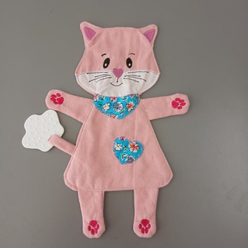 Χειροποίητη γλυκιά γατούλα από μαλακά βαμβακερά υφάσματα ιδανική για πανάκι παρηγοριάς των μικρών μας!