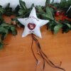 Χειροποίητο γούρι σε σχήμα αστεριού, γκρι βαμβακερό ύφασμα μοτίβου λευκά αστέρια με εντυπωσιακό κέντημα μπερδεμένα χριστουγεννιάτικα λαμπάκια και κεντημένη τη φράση ” I’m fine.This is fine.Everything’s fine.”!