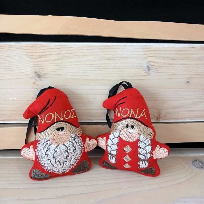 Δύο χαριτωμένα τσόχινα διακοσμητικά ξωτικά, με κέντημα “ΝΟΝΟΣ” και “ΝΟΝΑ”, ιδανικά για χριστουγεννιάτικο δώρο στους πνευματικούς μας γονείς!