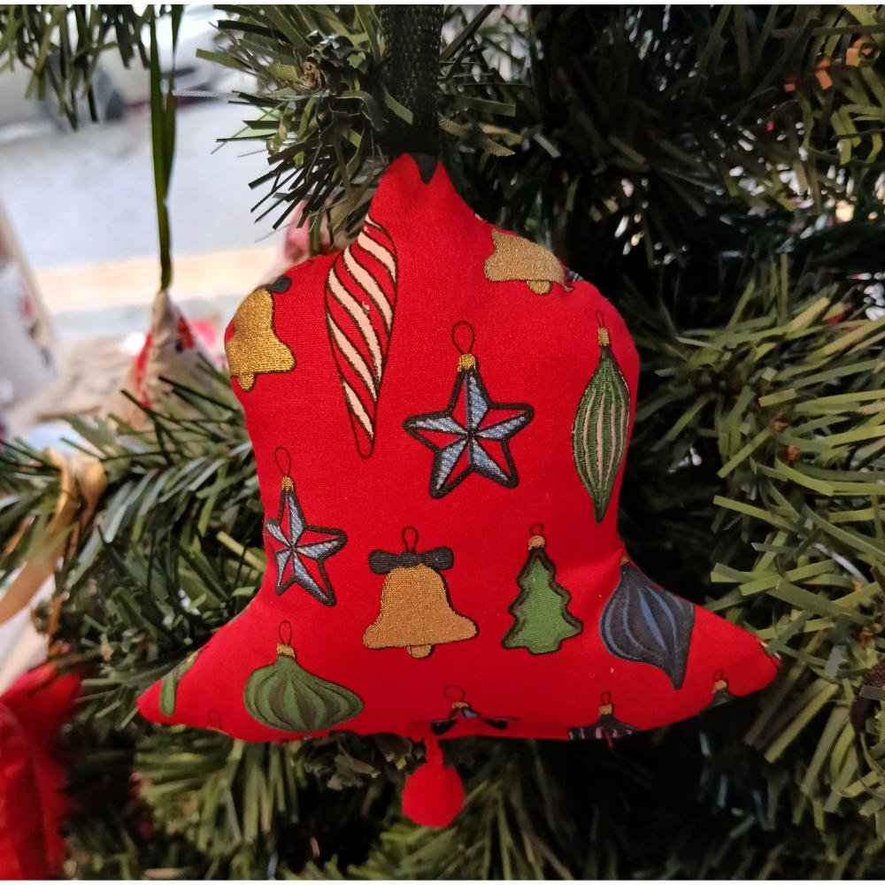 Φέρτε στο σπίτι τη νοσταλγική μαγεία των παλιών Χριστουγέννων με αυτή τη χειροποίητη υφασμάτινη καμπάνα. Με κόκκινο φόντο και πολύχρωμα ρετρό σχέδια, το στολίδι αυτό δίνει χρώμα και ζεστασιά σε κάθε γωνιά του σπιτιού. Ιδανικό για το δέντρο ή ως διακοσμητική λεπτομέρεια σε γιρλάντα ή στεφάνι.