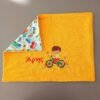 Σαλιάρα βαμβακερή πετσέτα με εντυπωσιακό κέντημα ελαφάκι στη μία πλευρά και ποπλίνα με μοτίβο ζωάκια στην άλλη. Κλείνει με κούμπαμα σκρατς.