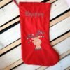 Χριστουγεννιάτικη χειροποίητη και προσωποποιημένη μπότα με ύφασμα κόκκινη ποπλίνα εξωτερικά και λευκό με μοτίβο χιονονιφάδες κόκκινες εσωτερικά. Έχουμε κεντήσει έναν εντυπωσιακό χιονάνθρωπο σε ροζ-λιλά αποχρώσεις και το όνομα με μεταλλική πολύχρωμη κλωστή.